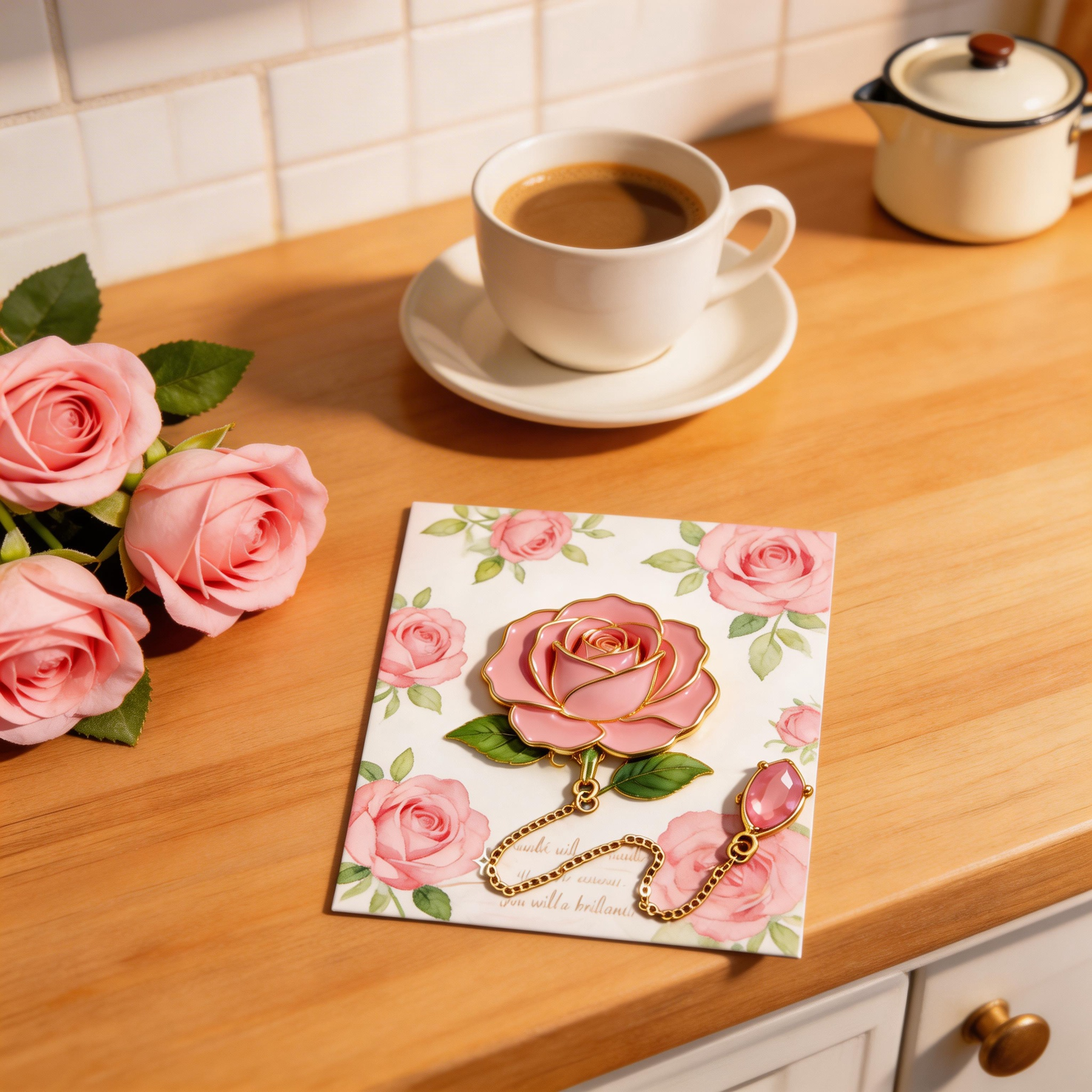 When she opened it, she immediately loved it. The rose design is beautiful and very delicate, and the soft pink color looks really elegant. She now keeps it in the book she reads before bed, and sometimes in her teaching notebook as well. She told me that every time she sees it, it reminds her of me and makes her smile after a long day.